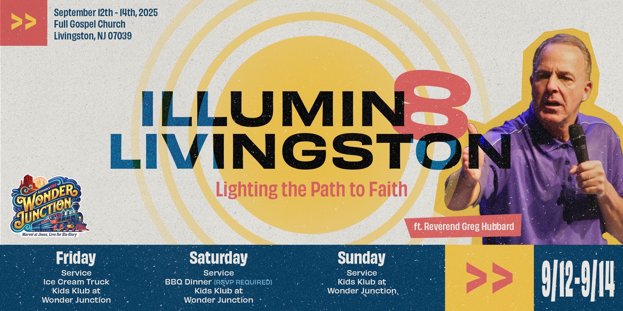 Join us for a transformative weekend at Full Gospel Church's "Illuminate Livingston" event, featuring life-changing messages from international speaker Greg Hubbard and exciting activities for kids at Wonder Junction.